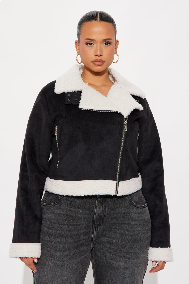 Відчуйте себе неперевершено в цій стильній мото-куртці, виготовленій з високоякісної штучної замші. Внутрішнє оздоблення з овчини додає затишку та тепла. Асиметричний крій та застібка-блискавка спереду підкреслюють сучасний дизайн. Ця куртка ідеально доповнить ваш образ. Склад: основна тканина/підкладка/задня частина: 100% поліестер. Імпортний товар.