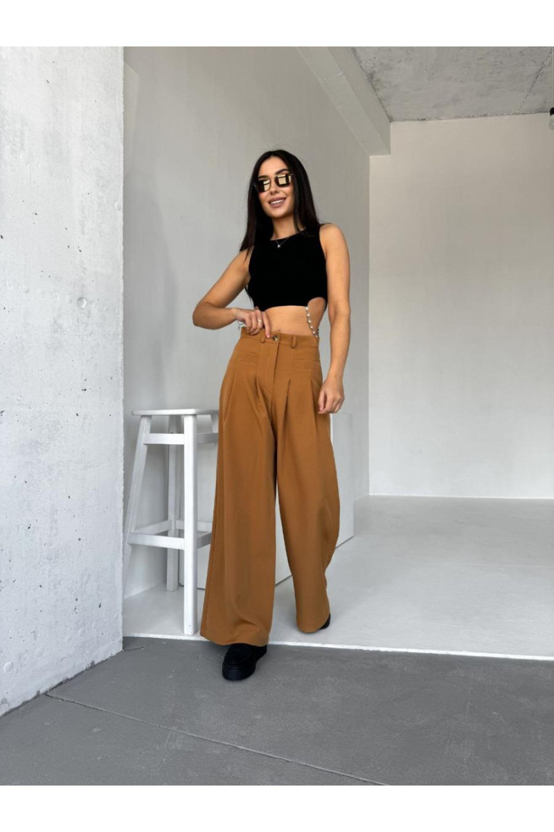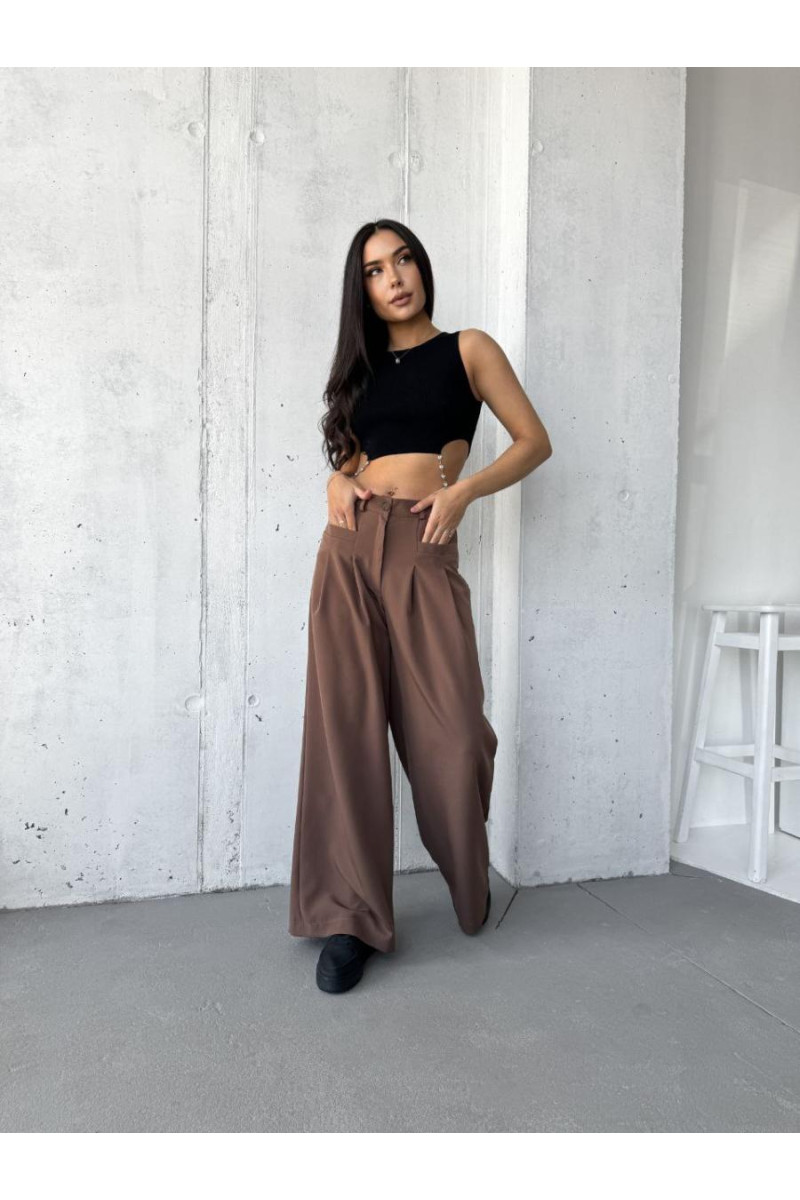 Штани кльош. Мод. . Тканина: костюмка. Кольори: чорний, темно-синій, мокко, цегла, шоколад. Розмір: 42, 44, 46, 48.