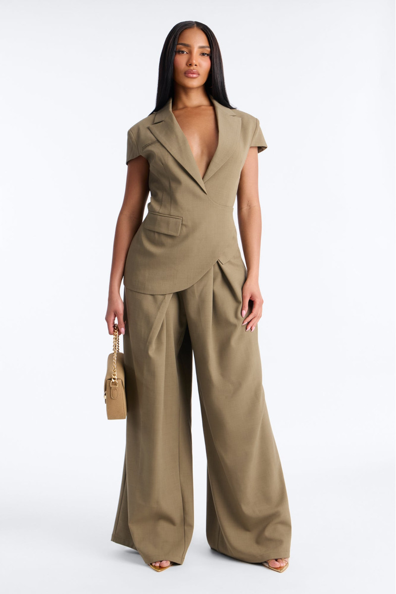 Додайте вишуканості своєму образу з нашими широкими штанами Tiana. Ці штани мають унікальний дизайн із запахом на талії та елегантними складками, що створюють витончений силует і підкреслюють фігуру. Широкі штанини забезпечують свободу руху та додають образу легкості. Виготовлені з м'якої тканини, вони гарантують комфорт протягом усього дня. Ці штани ідеально підійдуть для створення як ділових, так і вечірніх ансамблів.