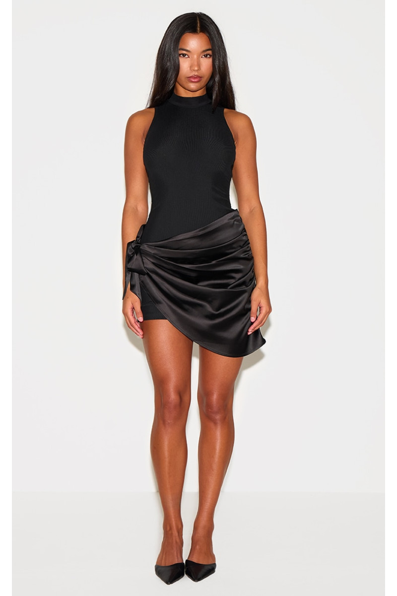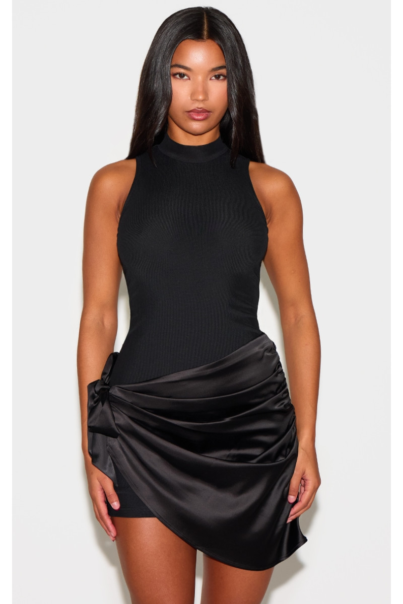 Це сплетене міні -плаття пропонує майстер -клас у заниженій драмі. Вирізаний з гладкого чорного тканого матеріалу, високе декольте забезпечує витончений контрапункт до атласних деталей, створюючи силует, який є і сучасним, і позачасовим. Підніміть вигляд скульптурними сережками з нашої колекції ювелірних виробів для готового для вечора ансамблю. Довжина приблизно 81 см/ 32 "(на основі розміру вибірки uk 8) Модель носить розмір UK 8/ EU 36/ AUS 8/ US 4MODEL Висота - 5 футів 6" Бренд: PrettyLittLethingCategory: DressesProduct Тип: BodyCon DrexColour: Blackmate: Тканий крепедик: PlainNeckline: High Shigkleeeves: SleveVelessocc: Вечір