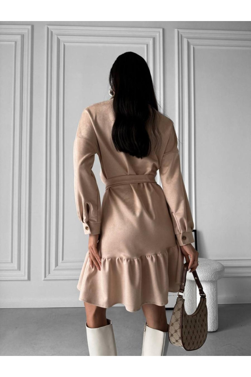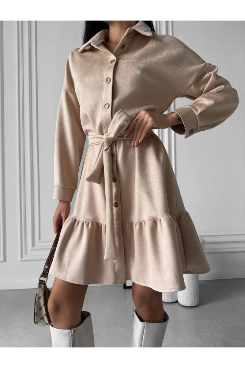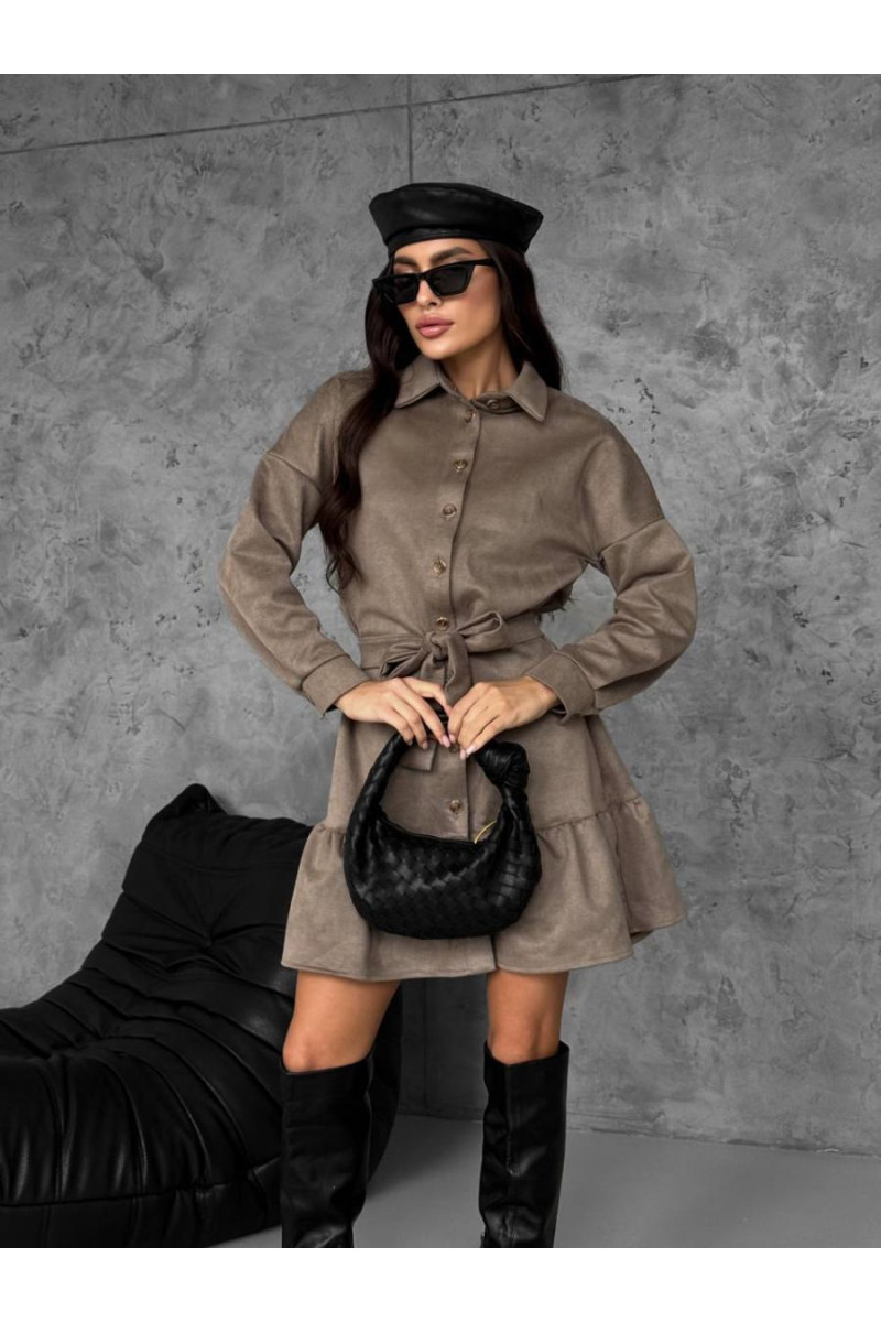 Модель Замшева жіноча сукня Розмірний ряд S,M,L,XL Тканина замш ( дуже якісний, приємний на дотик, не тонкий ) Кольори беж, шоколад та чорний Застібається сукня на ґудзики У коплекті пояс