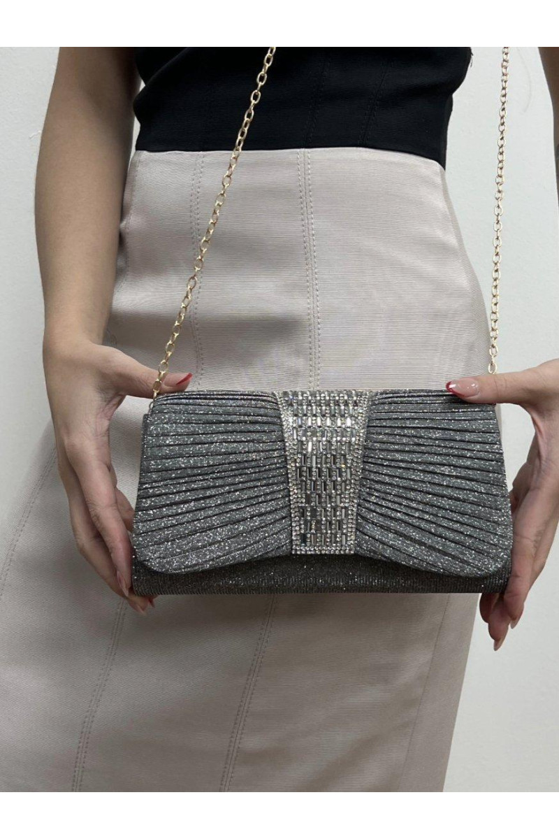 Блискучий клатч Diamante у сірому кольорі від SVNX. Виблискуючий сліпучою діамантовою деталлю, цей клатч стане ідеальним аксесуаром для будь-якого вбрання. Завдяки знімному ремінцю на ланцюжку ви можете носити його без рук або носити на ланцюжку для додаткової універсальності. Справжній must-have, щоб зробити заяву на наступному заході. Розмір: 21 см х 12 см х 5 см