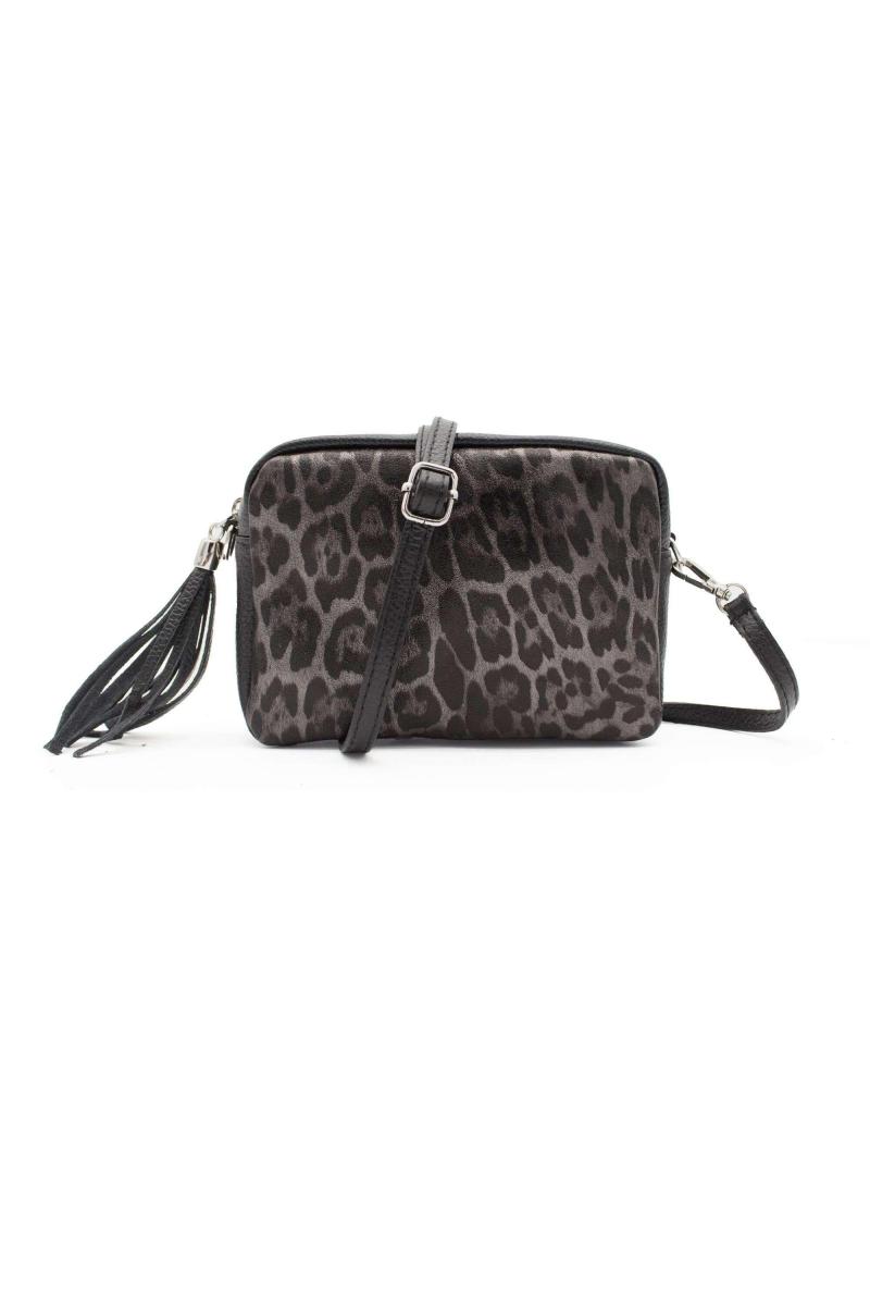 Італійський натуральний шкіряний леопардовий друк невеликий поперечний мішок з китицею шарм