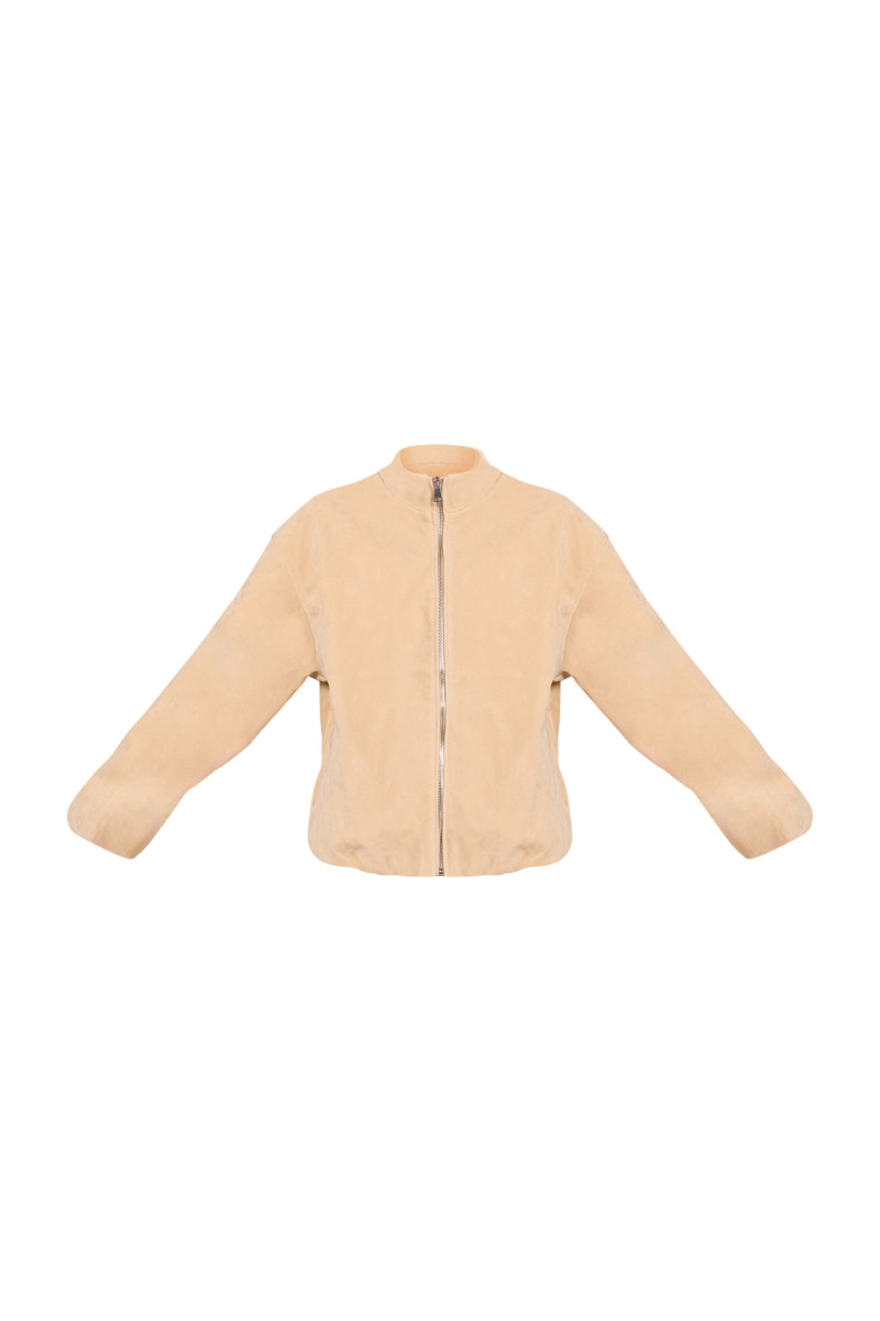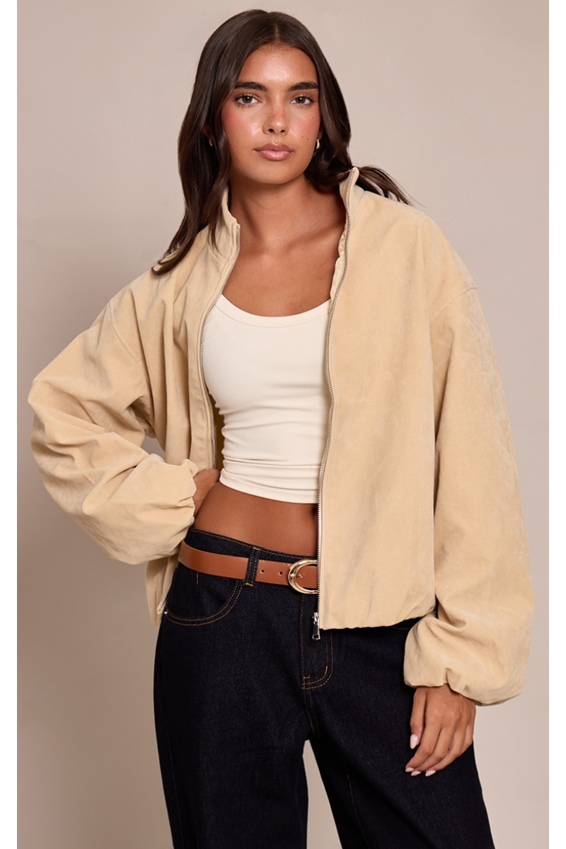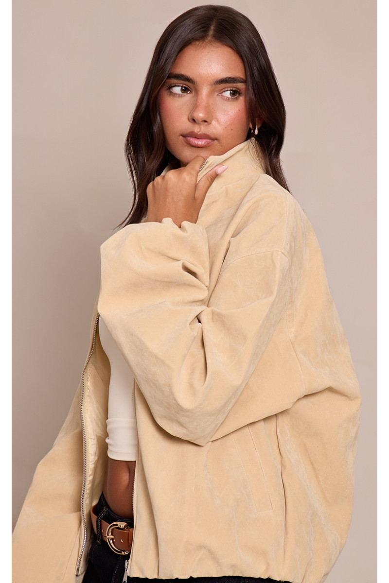 Принесіть край до верхнього одягу за допомогою куртки для бомбардувальників з маслом. Зроблений із замшевого матеріалу з масляного крем, він має силует бомбардувальників, кріплення блискавки та встановлені манжети для повсякденного зносу. Стиль з мулами -підборами або моквами та сумкою зчеплення для схожого на іншого. Довжина приблизно 48,5 см/19 "(на основі розміру зразка S) Модель носить розмір висоти Smodel - 5 футів 7" бренд: PrettyLittlingTheThercategory: Faux SuedeOccassion: Day