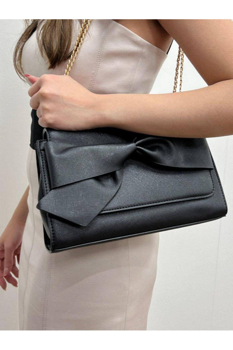 Сумка через плече з бантом від SVNX. Ідеальний аксесуар для гарного чи нижчого одягу. Ця сумка з елегантним бантом додає шику та грайливості будь-якому вбранню. Носіть його з універсальним ремінцем на ланцюжку, щоб виглядати без рук, або носити його як витончений клатч для вечірніх заходів. Незалежно від того, збираєтеся ви на вечірку чи вечірку, ця сумка полегшить укладання та додасть нотку вишуканості вашому гардеробу. Д x Ш x В - 25 см x 9 см x 16 см (приблизно)