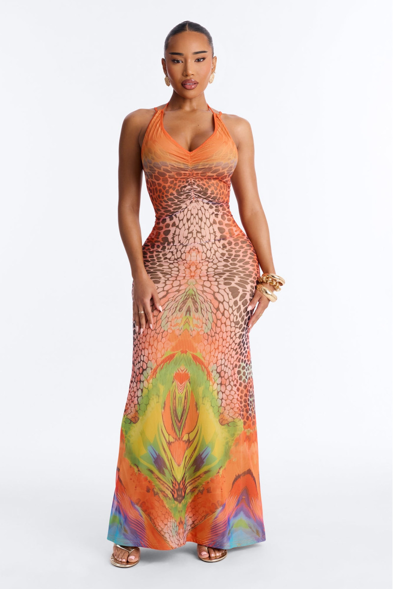 Відчуйте себе зіркою пляжного відпочинку в цій вишуканій сукні максі. Виготовлена з легкої сітчастої тканини, вона створює повітряний і романтичний образ. Делікатні бретелі підкреслюють витонченість плечей, а довжина максі додає елегантності. Ідеальний вибір для спекотних літніх вечорів та особливих подій на узбережжі.