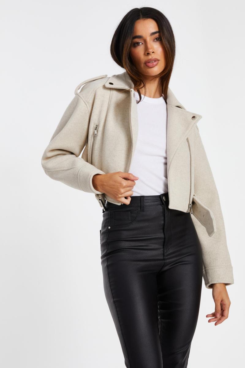 Ця негабаритна обрізана байкерська куртка оснащена фронтом на блискавці та асиметричним дизайном блискавки, що пропонує розслаблену придатність для повсякденних виїздів. Ідеально підходить для шарування під час зимових міських перерв або концертів.