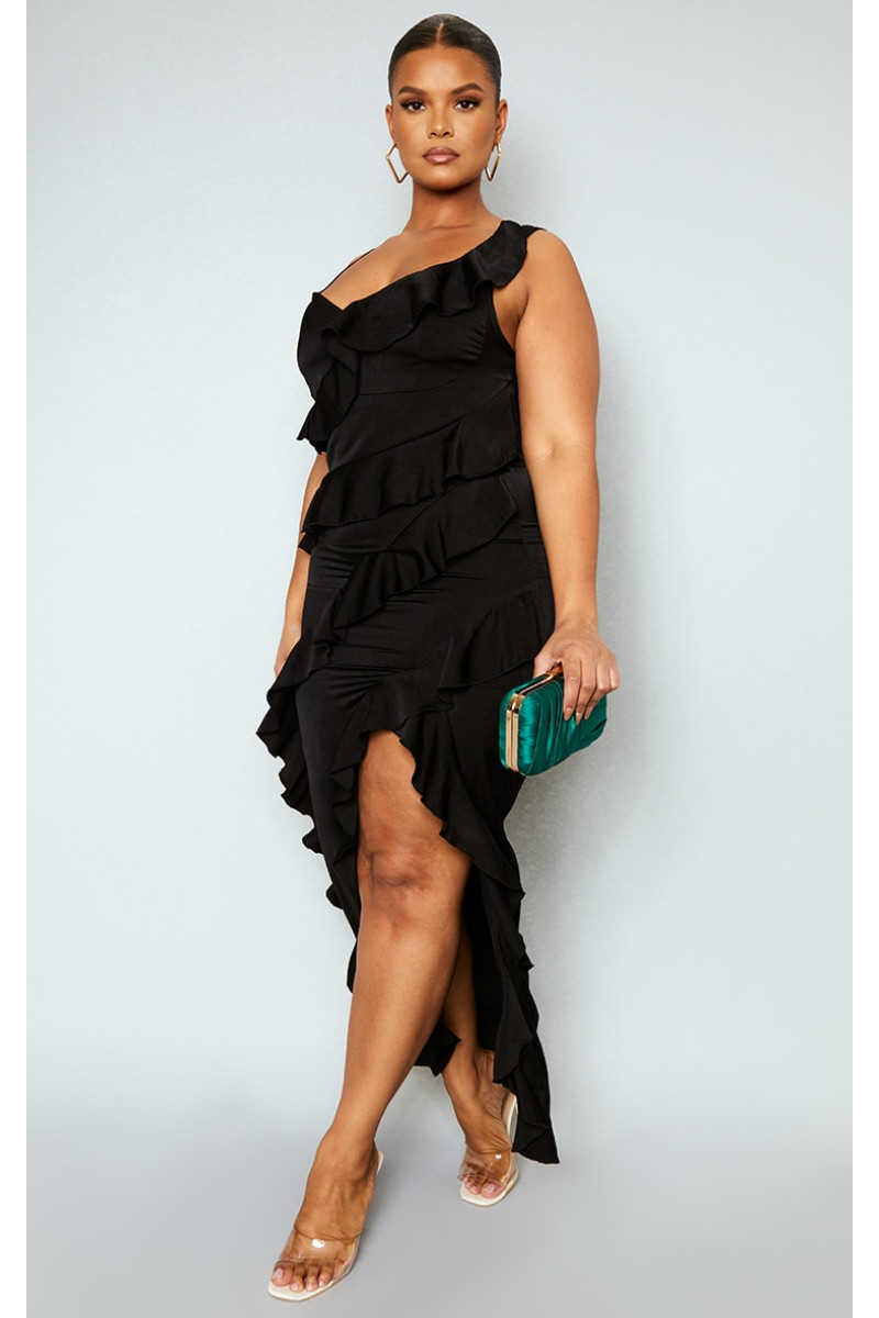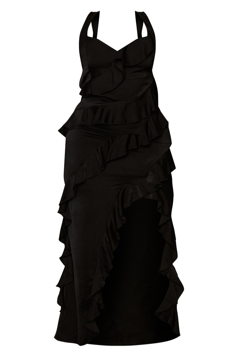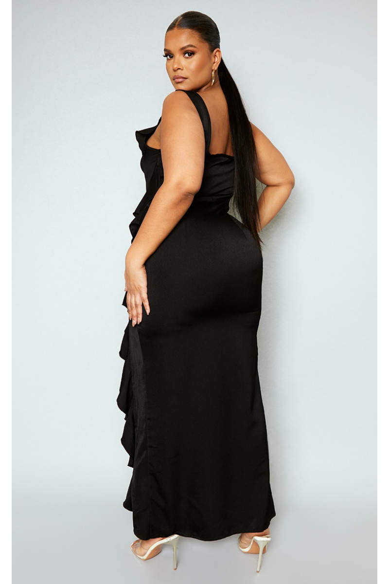 Будьте готові до події в цій неймовірно шикарній максі-сукні з чорною атласною оборкою. Завдяки чорному атласному матеріалу з оборками, багатошаровим дизайном і максимальною довжиною ми закохані. Зробіть образ кращим за допомогою туфель на підборах і ефектних аксесуарів для розкішного завершення. Довжина приблизно 155 см/61" (на основі розміру вибірки UK 16) На моделі одягнено розмір UK 16/ EU 44/ AUS 16/ US 12. Зріст моделі — 5 футів 7 дюймів. Категорія: Сукні. Тип продукту: Плаття. Колір: чорнийМатеріал: атлас. Дизайн: однотонний. Випадок: вечір.