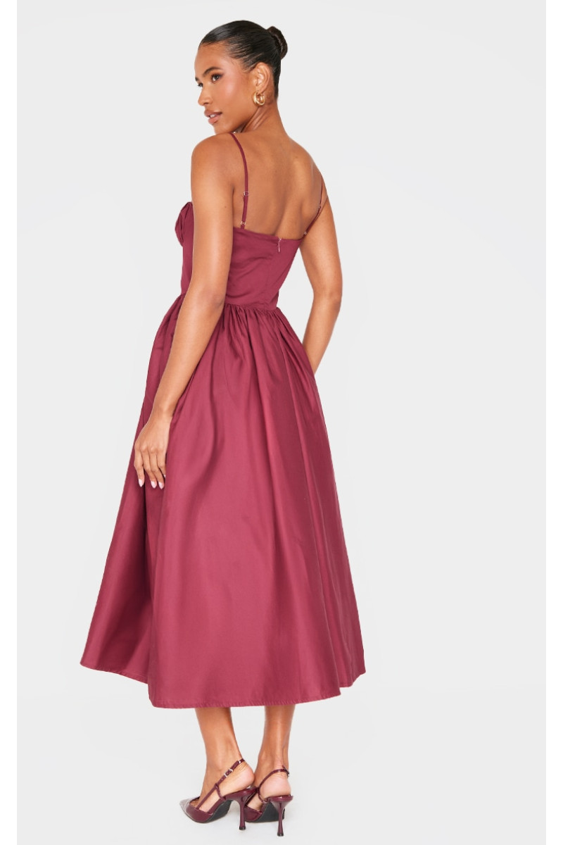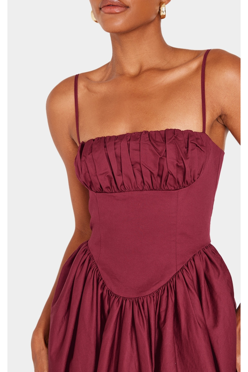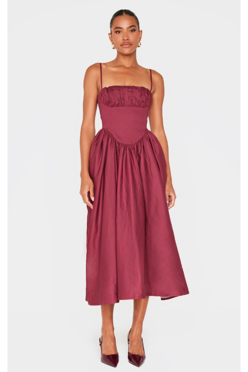 Запланували подію? Це бордове плаття середньої довжини з корсетом і бретельками з рюшами допоможе вирішити всі ваші дилеми щодо того, що одягнути. Пропонуємо вам матеріал бордового відтінку з гофрованим дизайном бюста, приємною посадкою на корсеті та довжиною мідаксі. Як ви можете встояти? Стилізуйте цю сукню на ремінцях із підборами та простими золотими каблучками, щоб миттєво покращити образ. Довжина приблизно 132 см/52" (на основі розміру вибірки UK 8) На моделі одягнено розмір UK 8/ EU 36/ AUS 8/ US 4. Зріст моделі - 5 футів 10 дюймів. Категорія: Сукні. Тип продукту: Сукня прямого крою. Колір: бордовий. Матеріал: тканий креп. Виріз: квадратні рукави: спагетті. Ремінець: привід
