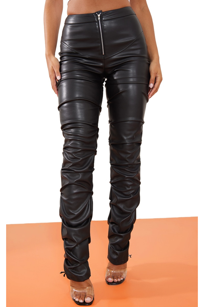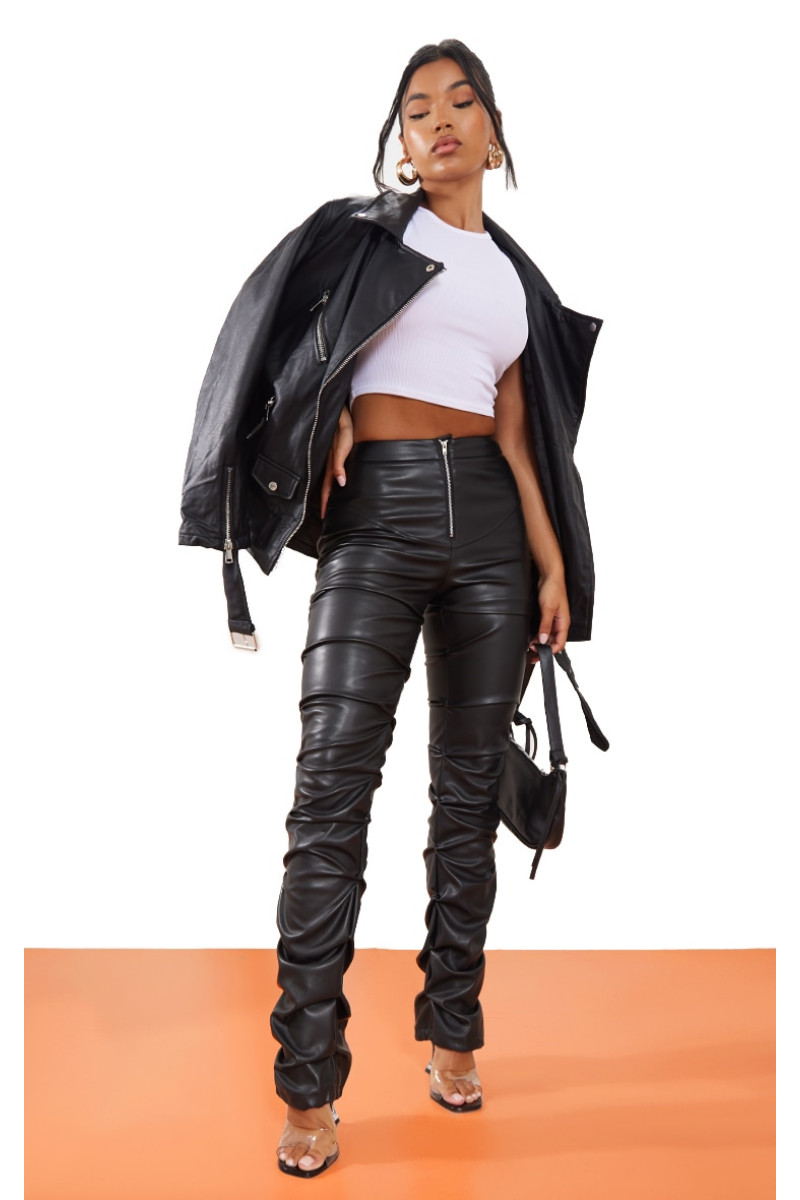 Продемонструйте свою жорстоку сторону з цими трусами. Завдяки чорному штучному шкіряному матеріалу з блискавкою спереду та гофрованими деталями, що вам не сподобається? Носіть білу укорочену футболку та туфлі на низьких підборах, щоб вигляд, який змусить їх говорити. Довжина приблизно 80 см/31,5 дюйма (на основі розміру вибірки UK 8) На моделі одягнено розмір UK 8/ EU 36/ AUS 8/ US 4. Зріст моделі — 5 футів 6 дюймів. Категорія: Низ. Тип продукту: Вузькі штани. Колір: чорний.