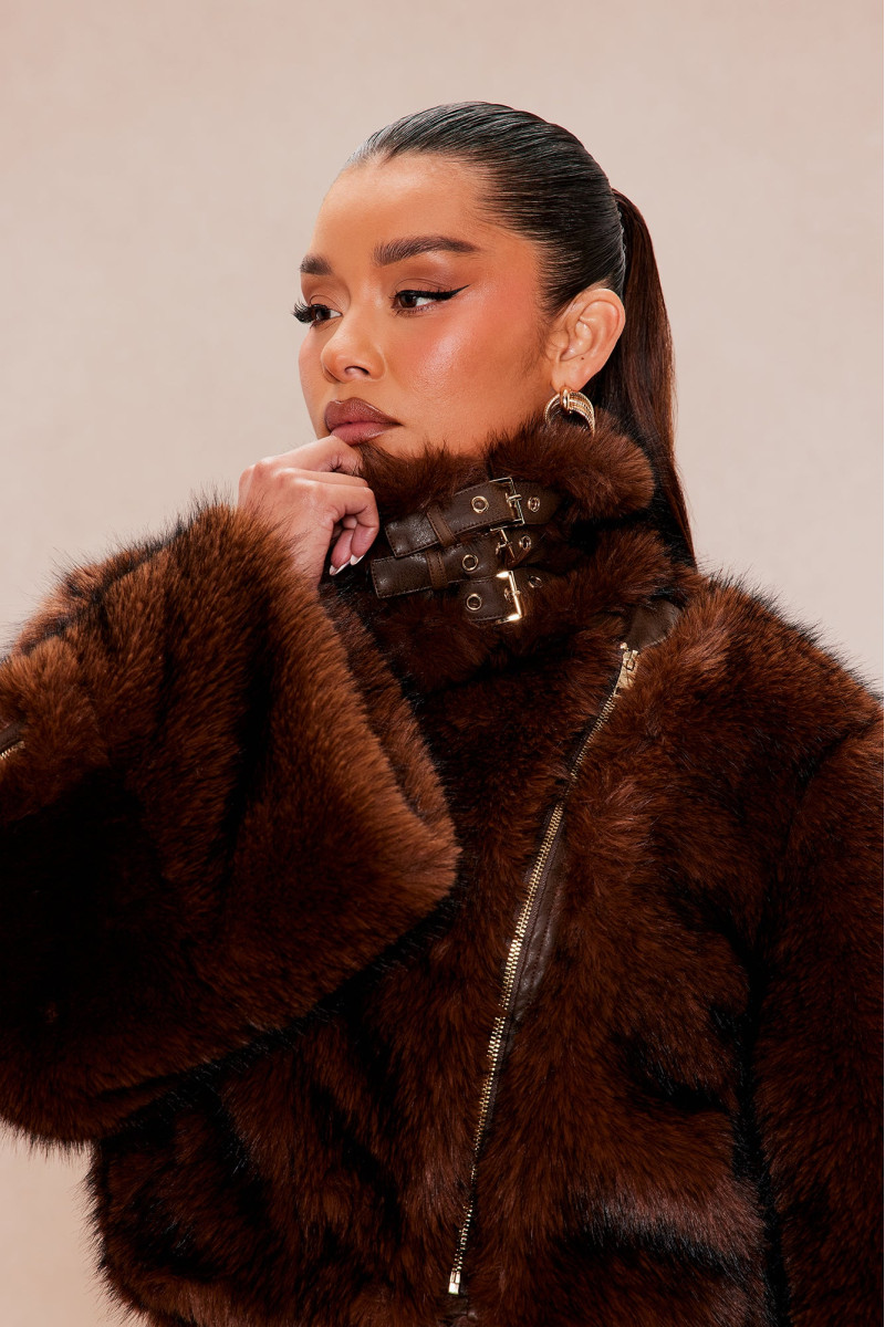 Ця розкішна укорочена куртка з м'якого еко-хутра стане вашим улюбленим елементом гардеробу. Вона має довгі рукави, комір та стильний акцент у вигляді пряжки. Застібка-блискавка спереду забезпечує зручність, а підкладка гарантує тепло. Ця модель не тягнеться. Склад: основна тканина/підкладка: 100% поліестер. Друга тканина: 50% поліуретан, 50% віскоза. Імпортний товар.