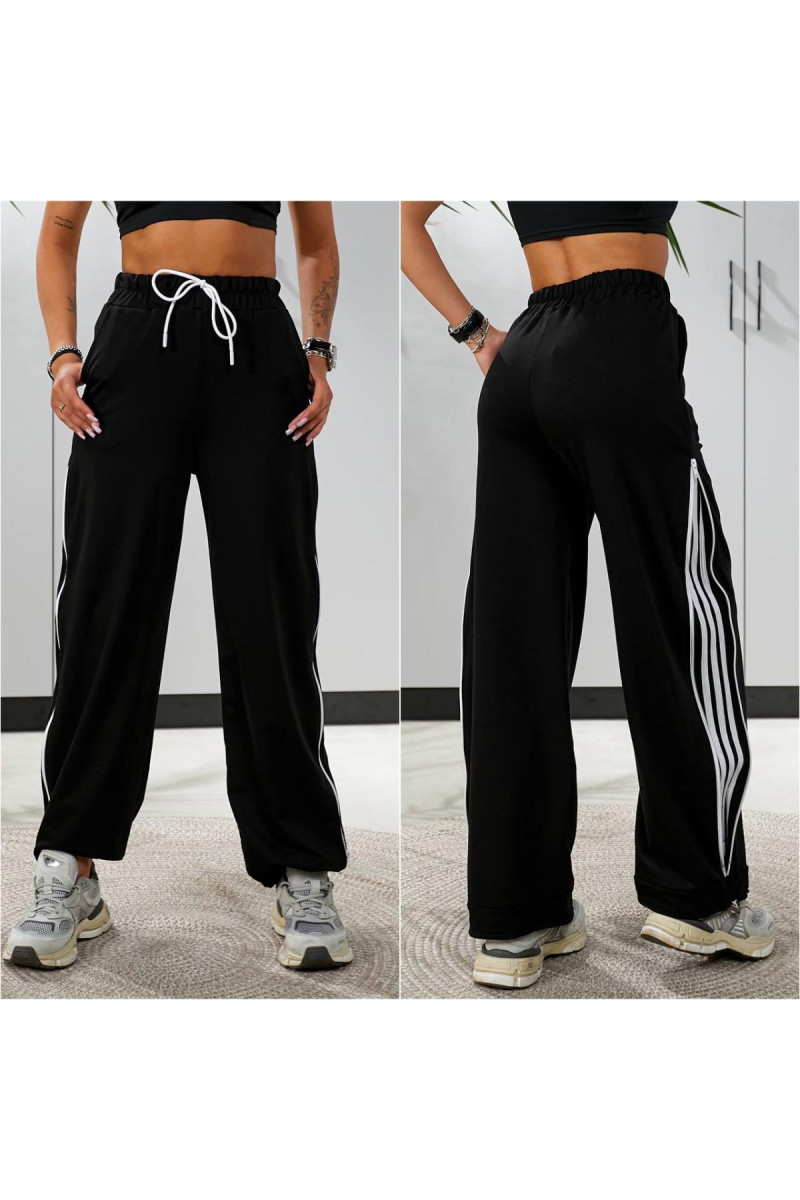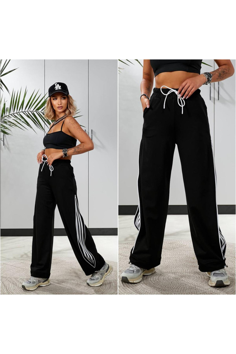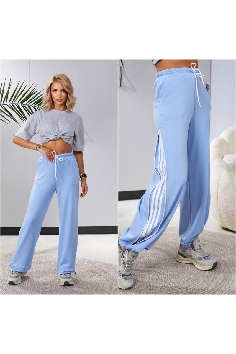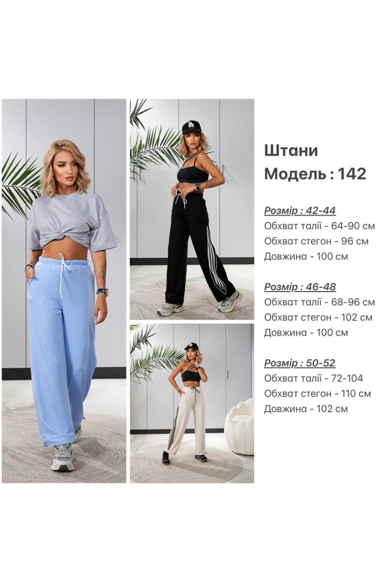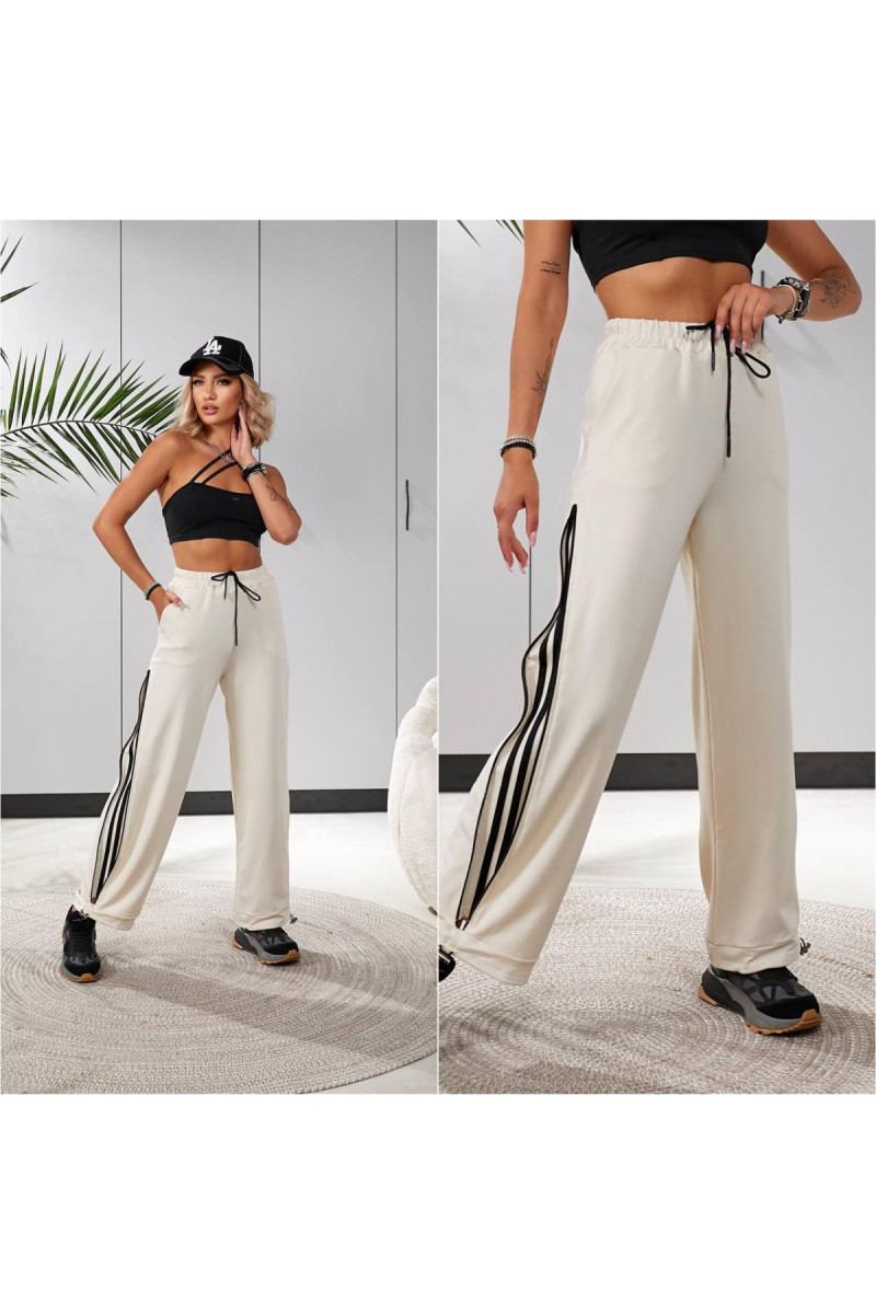 Функціональні штани із дуже якісного трикотажу — двунитка . Штани на мʼякій резинці зі шнурком для регулювання поясу . По низу куліска затягнувши які будуть джогери , розпустили — широка штанина . Головна фішка штанів — лампаси , які також знаходяться під змійкою збоку . По суті , четверо штанів в одних