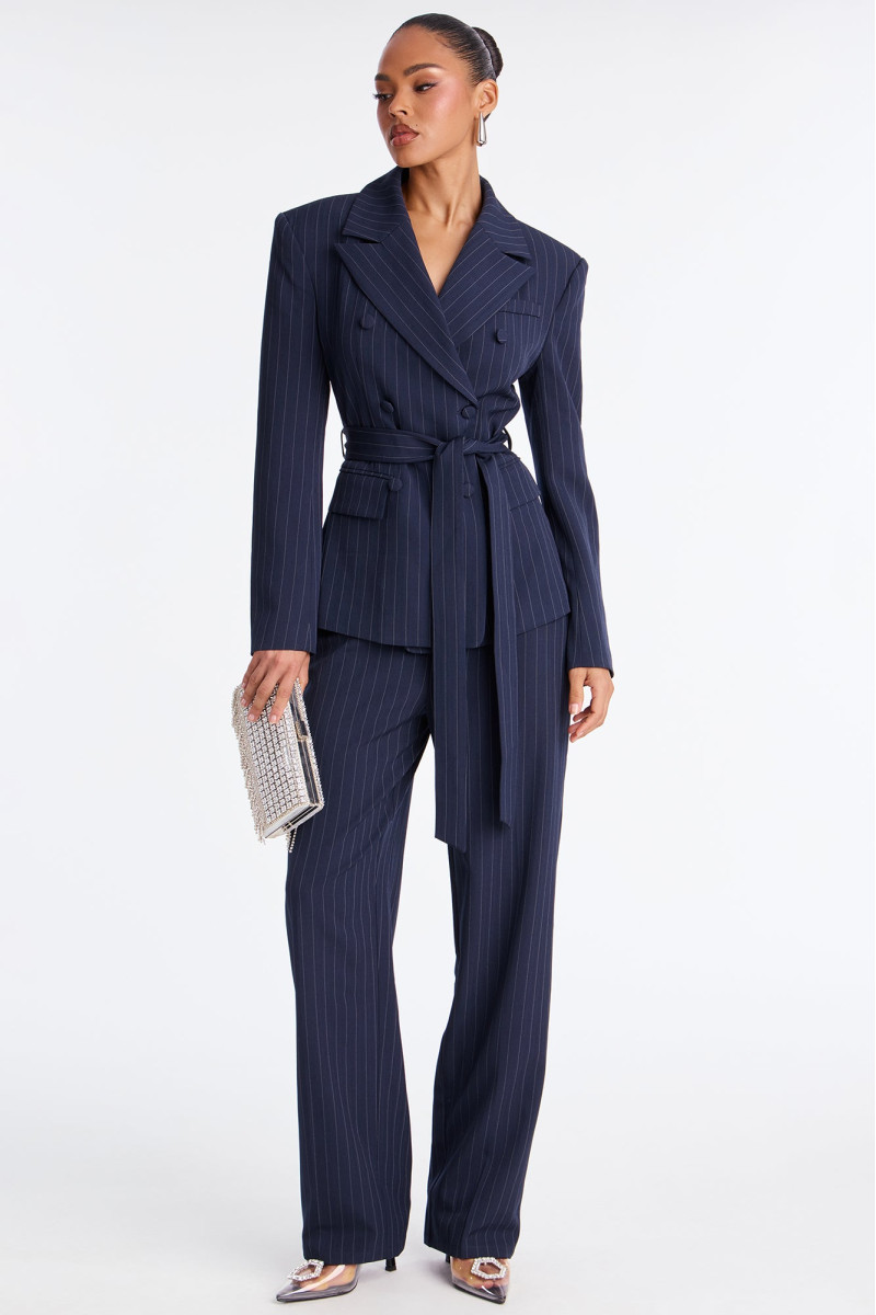 Класичні штани-кюлоти з вишуканою смужкою, що надає образу елегантності та стилю. Висока посадка ідеально підкреслює фігуру, а тканина crepe woven забезпечує комфорт та бездоганний вигляд. Застібка на гачок та петлю гарантує надійну фіксацію. Штани мають нерозтяжну структуру та довжину по внутрішньому шву 32 дюйми. Рекомендуємо поєднувати з жакетом "Keep The Focus Belted Pinstripe Blazer" для створення завершеного ділового образу. Виготовлені з високоякісної суміші поліестеру, спандексу та віскози.