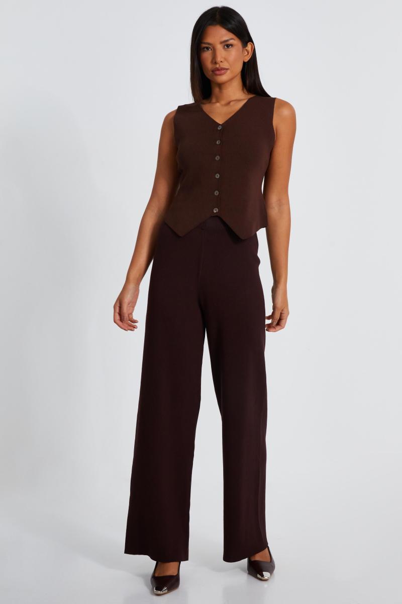 Ці штани з широкими ногами мають розслаблену підходящу та високу талію, виготовлені з легкого в’язаного матеріалу для комфорту. Ідеально підходить для повсякденного носіння в осінні та зимові сезони.